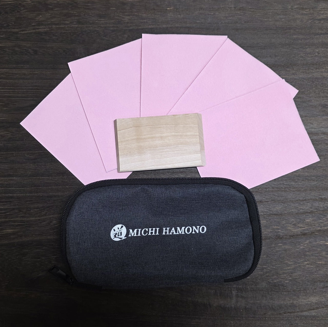 Contents: Sharpening Cloth (100 *130 mm)*5pcs / Original Wooden Base (Birch, 60 *98 *6mm) / Original poach / Instructional Manual.